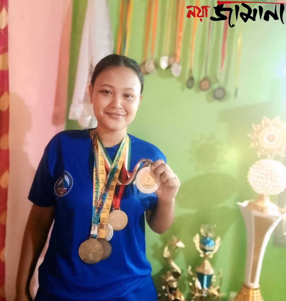 নয়া জামানা , আলিপুরদুয়ার : মৌমিতা খাতুন নামটা হয়তো অনেকেরই অজানা। অথচ আলিপুরদুয়ারের এক চা বাগান থেকে উঠে এসে জেলা ও রাজ্য স্তরে প্রায় ২৫টি পদক জিতে নিয়েছেন তিনি। বক্সিং, জুডো ও কারাতে তিনটি খেলাতেই তাঁর সাফল্যের ছাপ স্পষ্ট। কিন্তু দুর্ভাগ্যজনকভাবে, এমন প্রতিভার গল্প খুব কমই শিরোনামে জায়গা পায়। আলিপুরদুয়ার জেলার মাদারিহাট ব্লকের হান্টাপাড়া টি গার্ডেন চা পাতার সুবাসে ভরা এক ছোট্ট গ্রাম। সেখানেই জন্ম ও বড় হয়ে ওঠা মৌমিতার। খুব অল্প বয়সেই বাবাকে হারান। সংসারের একমাত্র ভরসা মা, যিনি দিনরাত চা বাগানে পরিশ্রম করে কোনোরকমে সংসার চালাতেন। অভাব ছিল নিত্যসঙ্গী। তবুও ছোটবেলা থেকেই মৌমিতার চোখে ছিল বক্সিংয়ের স্বপ্ন। গ্রাম থেকে দুই-তিন ঘণ্টার বাসযাত্রা পেরিয়ে ক্লাবে পৌঁছাতেন। অনেক দিন ভাড়ার টাকাও থাকত না। তবুও রিংয়ে ঘাম ঝরানো বন্ধ করেননি। কারণ তিনি জানতেন—লড়াই করাটাই তাঁর আসল শক্তি। অভাব শুধু সংসারের নয়, খেলাধুলার ক্ষেত্রেও বারবার টেনে ধরেছে মৌমিতাকে। বহু প্রতিযোগিতায় সুযোগ পেয়েও শুধুমাত্র অর্থের অভাবে যেতে পারেননি। ক্লাবে নিয়মিত অনুশীলন করাটাও ছিল একপ্রকার যুদ্ধ। মৌমিতা বলেন,“অনেকেই সাহায্যের প্রতিশ্রুতি দিয়েছেন, কিন্তু বাস্তবে পাশে দাঁড়ায়নি কেউ। তখন ভেবেছি, নিজের লড়াইটা আমাকে একাই লড়তে হবে।”সেই জেদ থেকেই একসময় তিনি নিজেই চা ফ্যাক্টরিতে কাজ শুরু করেন। শ্রমের টাকায় কিনেছেন গ্লাভস, জোগাড় করেছেন যাতায়াত খরচ। একদিকে রিংয়ের লড়াই, অন্যদিকে জীবনের লড়াই—দুটোই একসঙ্গে সামলেছেন তিনি। সংগ্রামের পথ থামাতে পারেনি তাঁকে।
